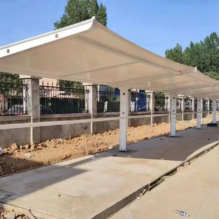 随着城市化进程的不断加快,停车问题越来越成为城市管理中的一大难题。在众多解决方案中,乳山市的7字型膜结构停车棚凭借其独特的设计和优越的性能,逐渐受到广泛关注。这种停车棚不仅在美观上颇具现代感,还在功能性、耐用性和环保性等多方面表现出色,是当下城市停车设施的理想选择。 一、7字型膜结构停车棚的设计理念7字型膜结构停车棚的造型如其名,呈现出一种简洁而富有流动感的设计,以“7”字形